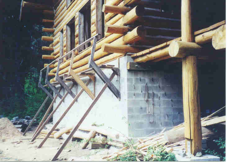 This is the scaffolding in place for chinking the last 7 seams on the southwest wall.
