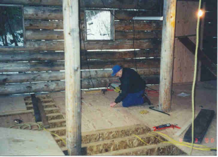 The major projects for 2000 were the main subfloor, the roof, start staining the outside, and start on the loft floor.