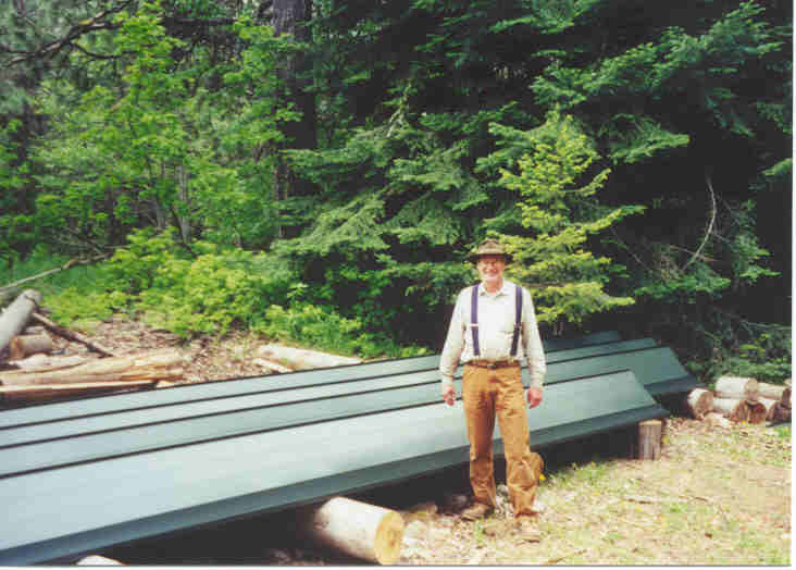 Sean and Mike from CP Sheet Metals setting up to make the steel roof panels. The log rack on the left is set up to hold them.