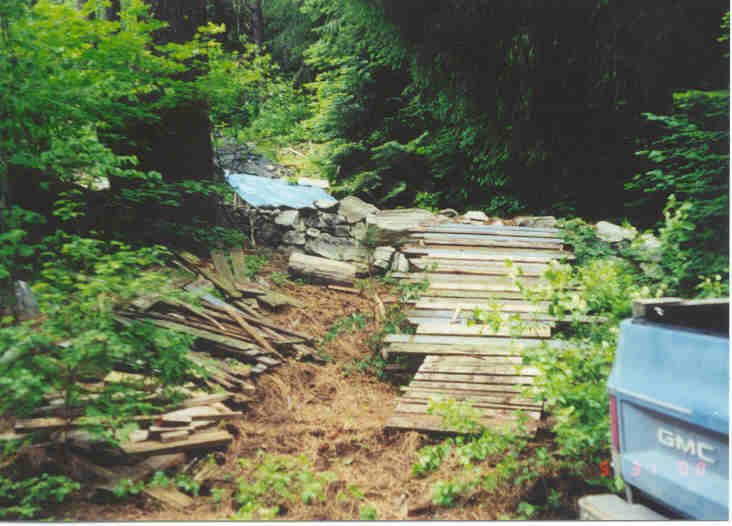 Ellen is carrying her end of a 40-foot panel up the walkway. You can see the pickup and the trailer down below.