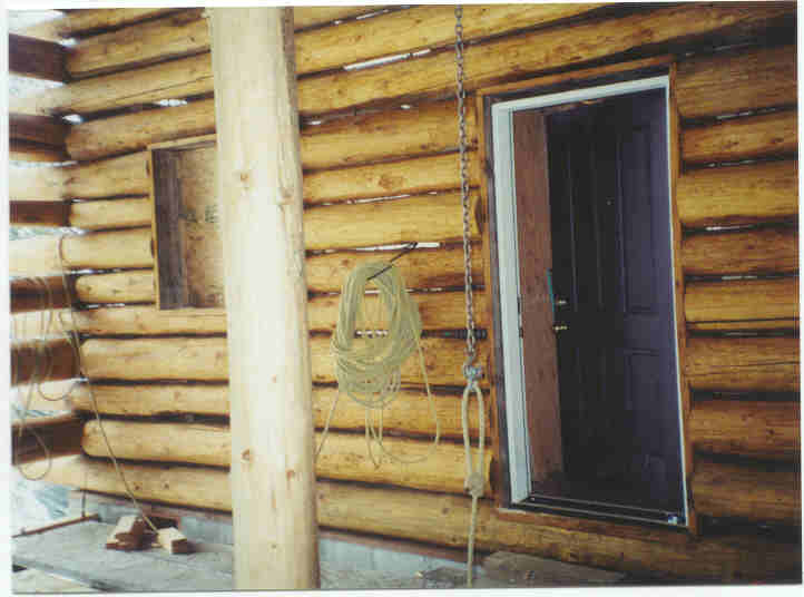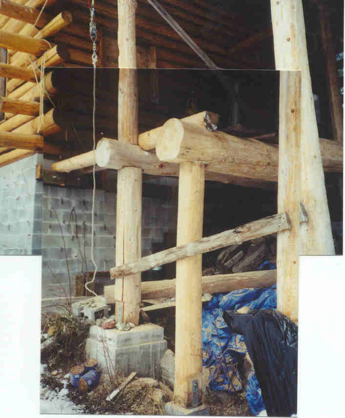Here the Grid F.5 porch beam is on top of the post in the previous picture. It is a massive log which I think gives a good effect in this position. 11/29/01