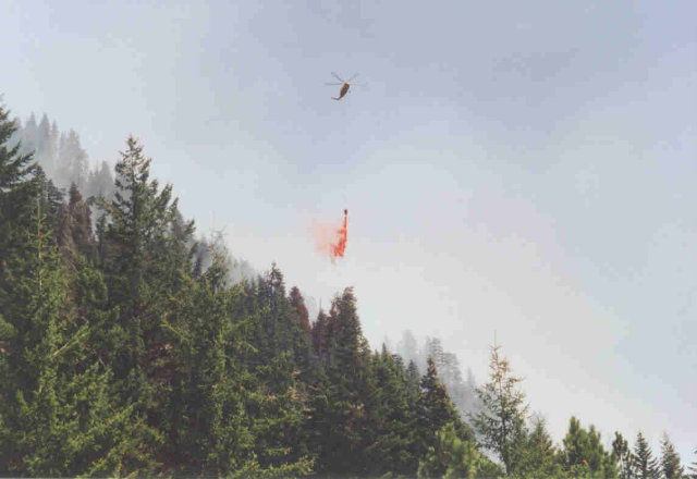 There were lots of helicopters and even fixed wing aircraft dropping water and fire retardant on the fires. ( 8/2/05)