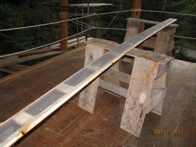 5/11/11 Paul rasping one of the holes cut in a vent board to smooth the edges.