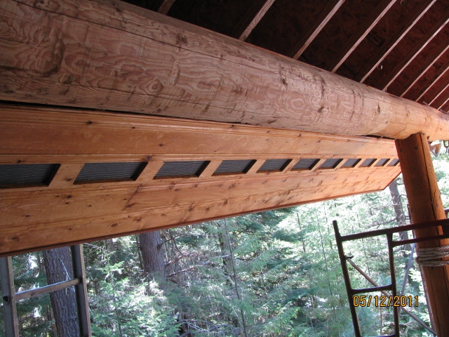 5/12/11 The first four courses of ceiling boards are installed on the front porch ceiling.