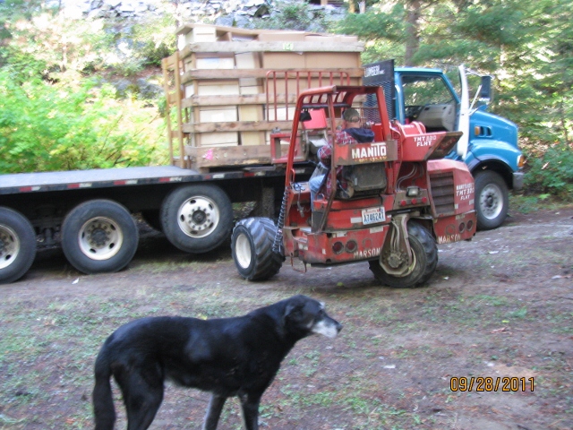 9/28/11 The cabinet delivery truck and forklift with Bert looking on in the foreground.