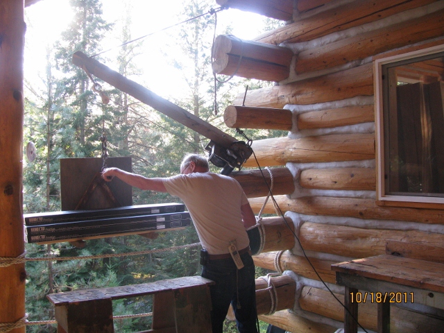 9/28/11 The crate of cabinets is lifted up to the level of the porch.