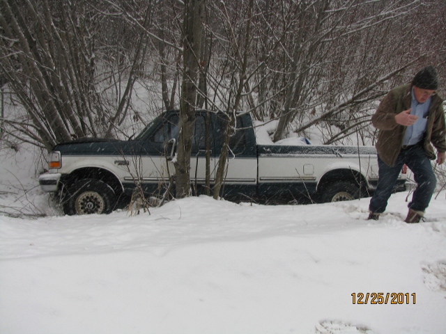12/25/11 Paul slid off the road and into the ditch taking the family up to Camp Serendipity for an outing on Christmas Day. Our plans changed abruptly at this moment.