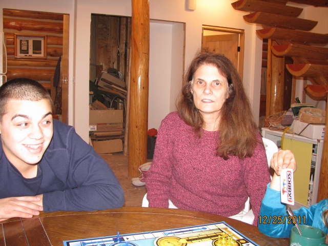 12/25/11 Paul, Andrew, and Tianna playing Sorry in the cabin after the accident.