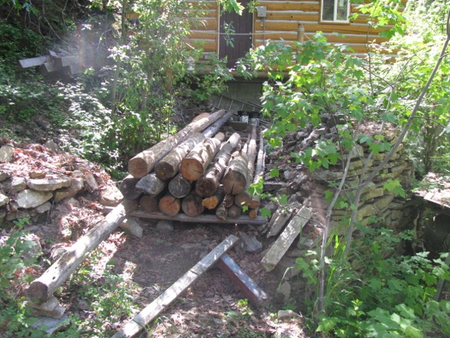 5/21/13 This log rack is for storing logs that used to be in front of the cabin. They were moved to make space for all the firewood that resulted from the 2013 ice storm.