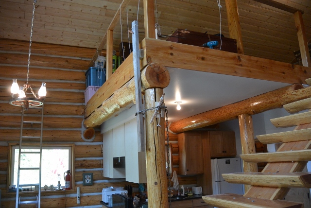 5/14/15 Because the board was cut too long the first time, there wasn't quite enough for this second board to reach snugly against the log wall. Those gaps are the result.