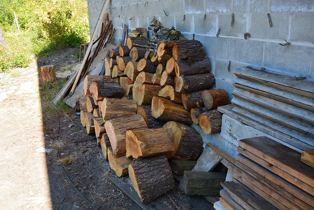 8/4/16 This woodpile is the result of harvesting the last of the trunk of the tree that crashed into the cabin in 2014.