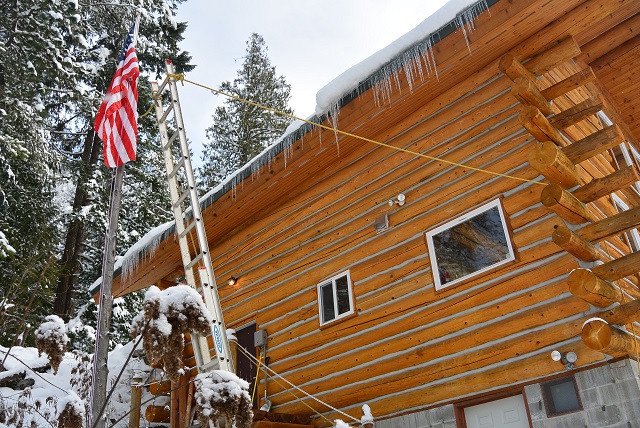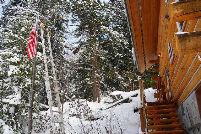 12/15/16 Another view of the rigging. The flag was successfully freed after Paul climbed to the top of the ladder.