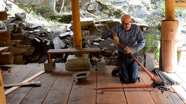5/25/17 Here I am using Dr. Dick's rebar cutter to cut the balusters to length.