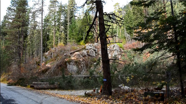 10/30/18 The tree has fallen and has slid down the cliff on its way.