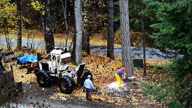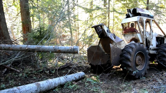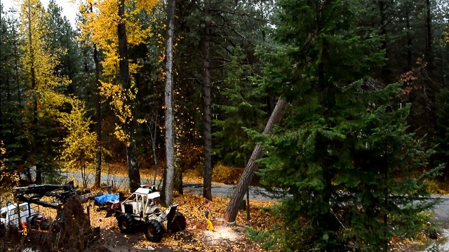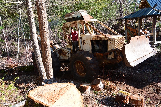 11/7/18 Skidder is backing up past the woodshed going way back into the woods to get logs.