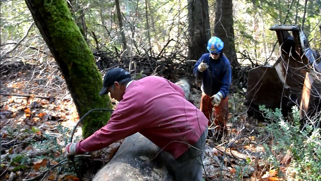 11/7/18 Two logs are being skidded out of the woods to be stacked on the edge of the bluff.