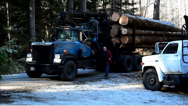 11/8/18 The load is ready and the log truck is taking the logs away. Quite a nice load.