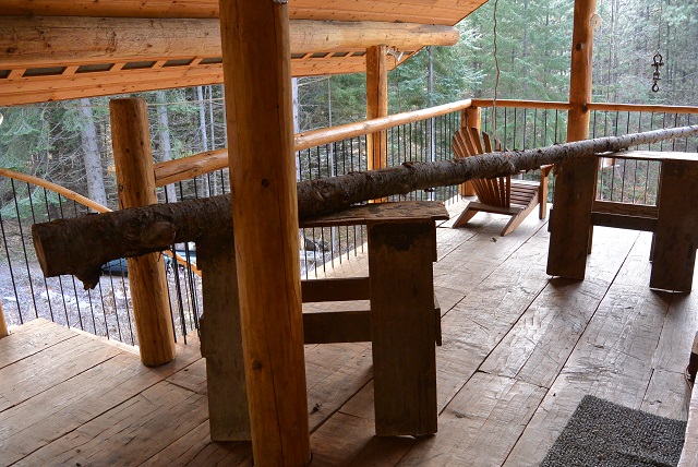 11/20/18 Here is a pole that might work as a rail for the back porch stairs. It is only a candidate but I wanted to get it up on the porch before it snows just in case I wanted to start working on it.