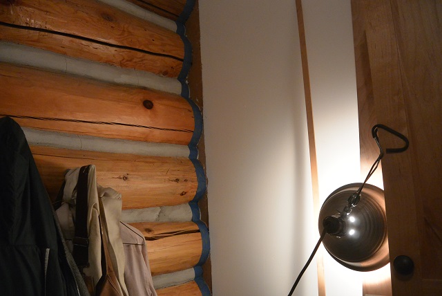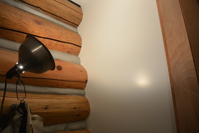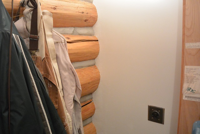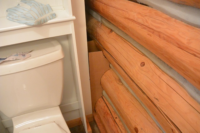 11/3/21 Here's a picture of the finished seam between the bedroom/bathroom wall and the log wall.