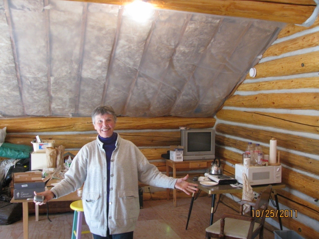 10/23/13 Bob and Pat in the loft with the beginning of the first course of interior ceiling boards visible in the background.
