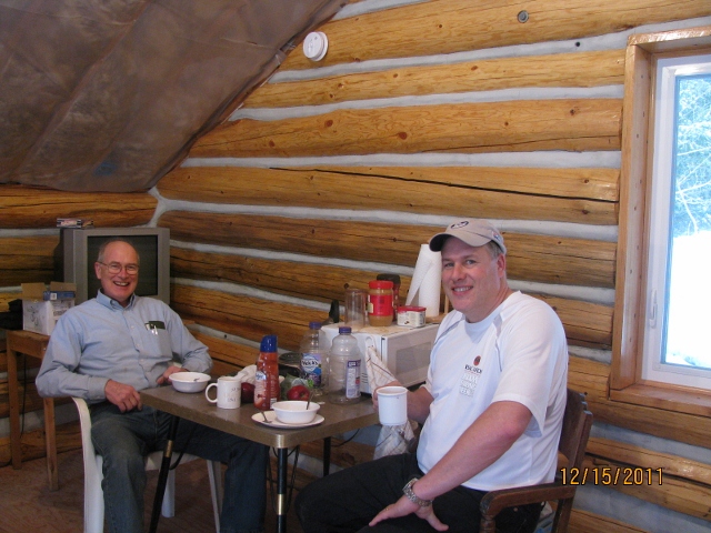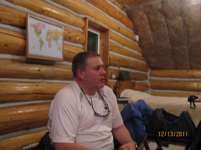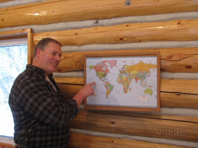 12/13/11 Dave pointing to map showing Paul and Ellen's website readers