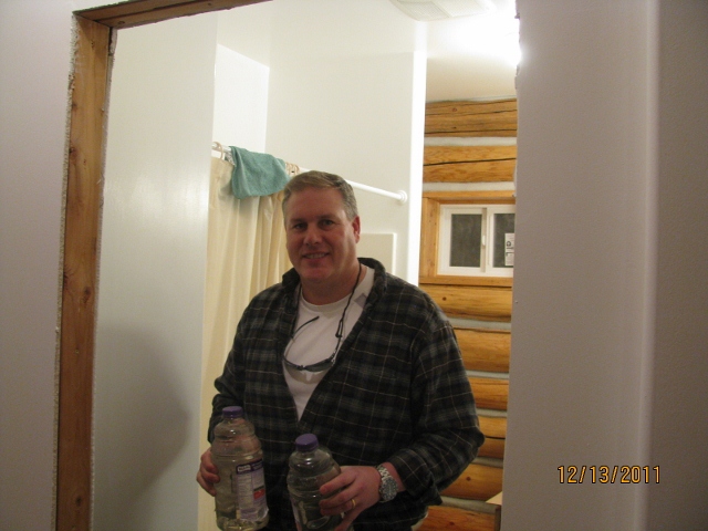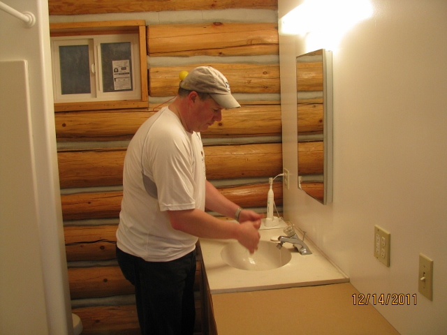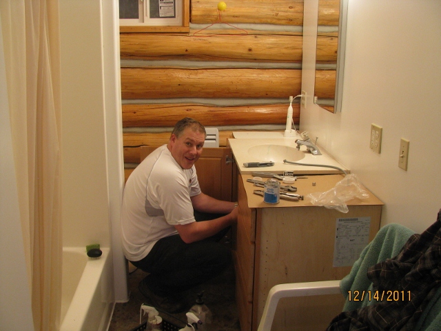 12/14/11 Dave installing the temporary sink in the bathroom.