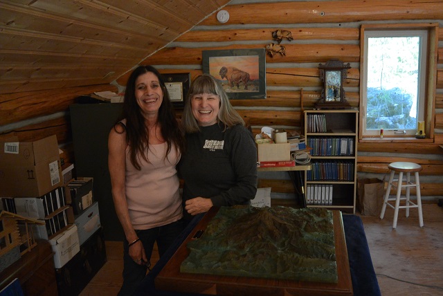 4/30/19 After a tour of the cabin, they viewed the bronze model of Mt. Rainier.