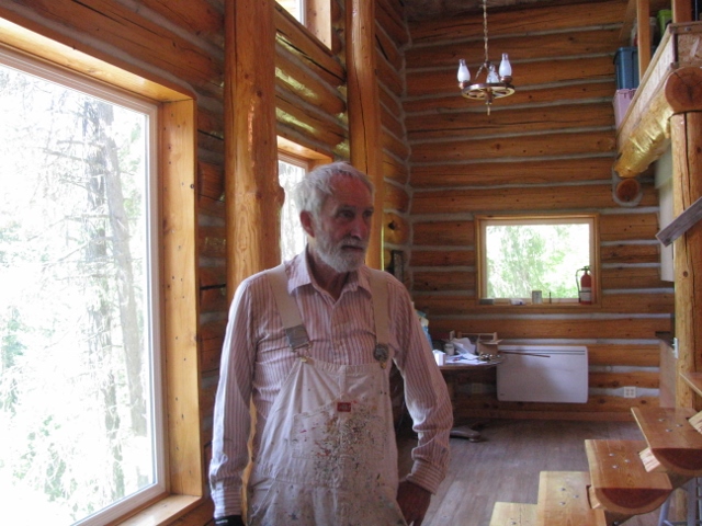 7/10/13 Phil telling me about his recent trip to Africa and discussing spudding logs.