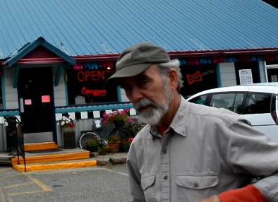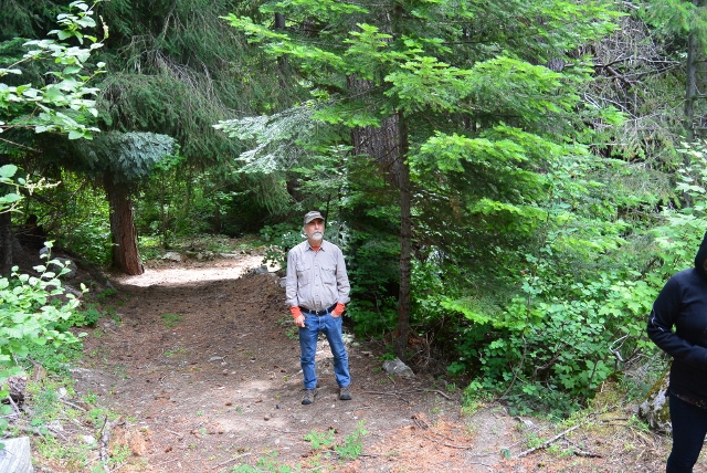 6/26/14 Dennis is walking up the road looking up at the cabin at Camp Serendipity