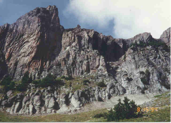 Ellen with our first view of the saddle (directly above her) that we think is the easiest route to Elysian Fields.