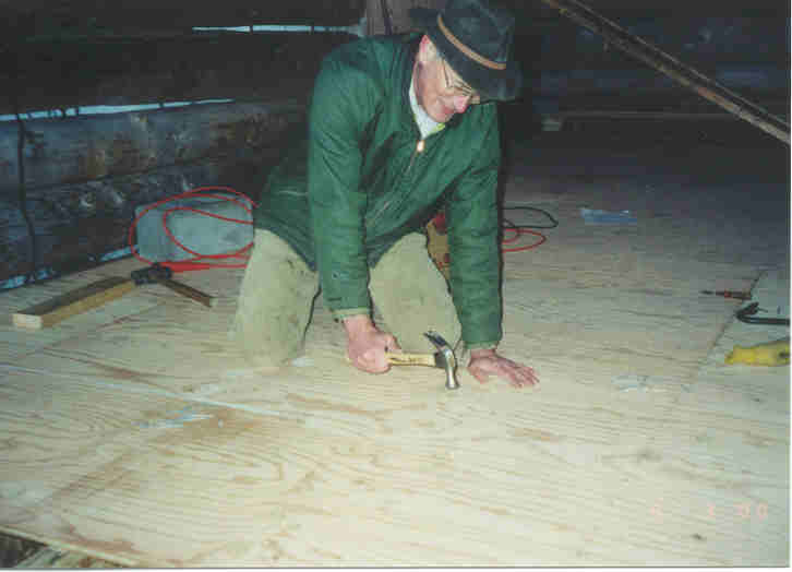 Here is Paul nailing down the plywood subfloor.