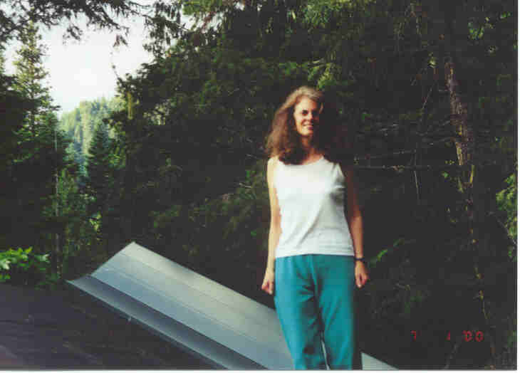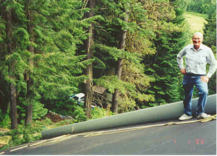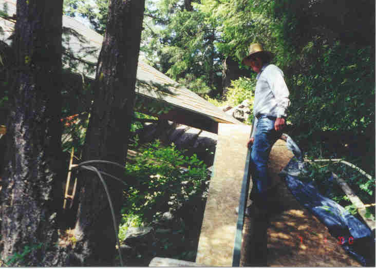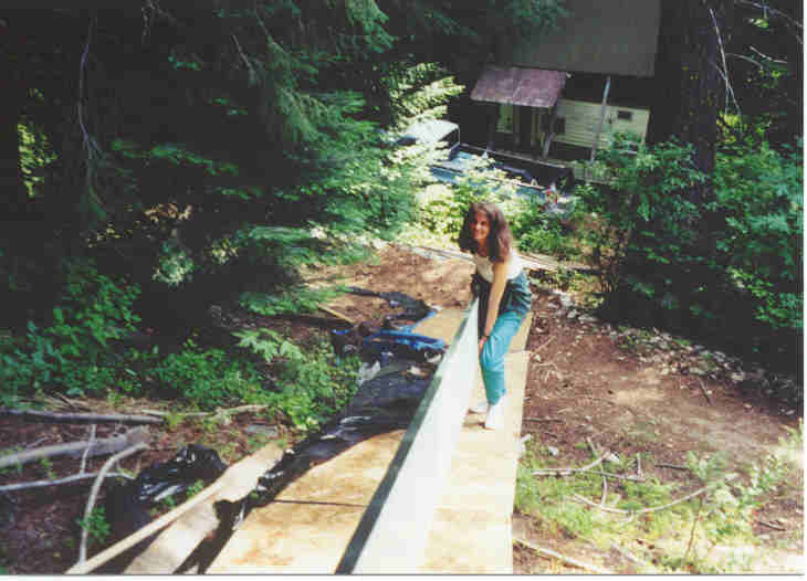 Ellen is carrying her end of a 40-foot panel up the walkway. You can see the pickup and the trailer down below.