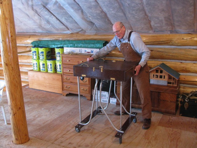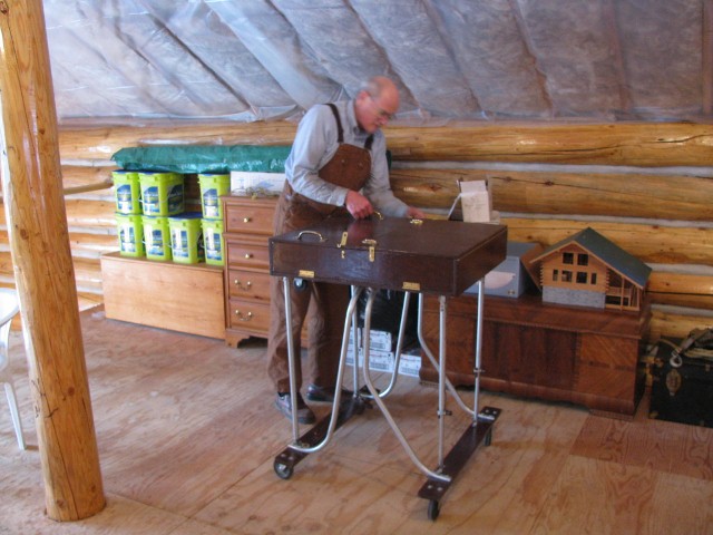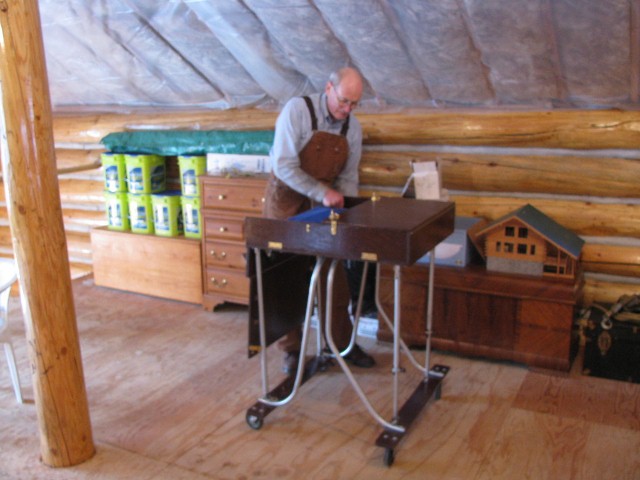 12/22/10 Paul is removing the pins as the first step in reconfiguring the case into display mode.