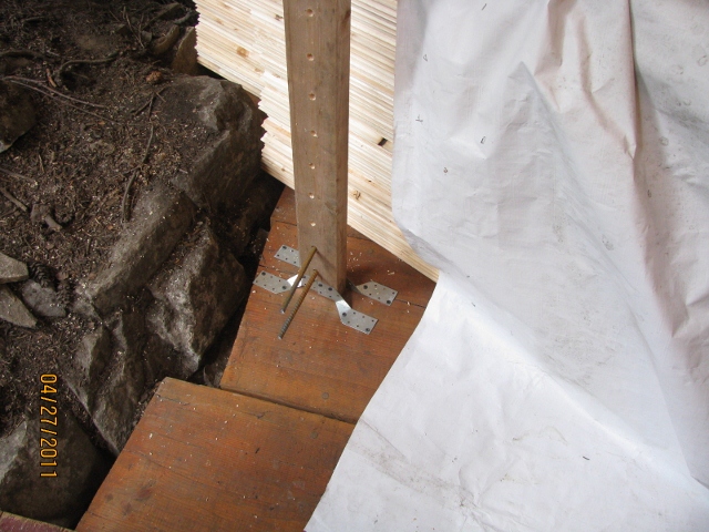 4/27/11 The rack stanchions are fastened to the porch deck with hurricane ties.