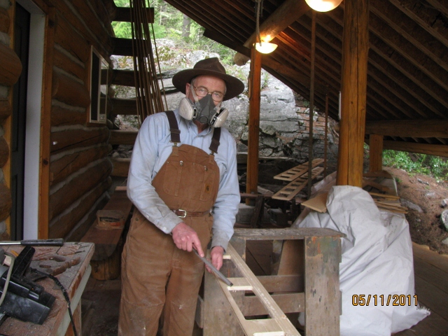 5/11/11 Paul rasping one of the holes cut in a vent board to smooth the edges.