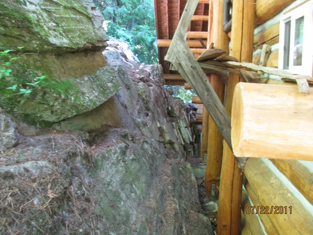 7/22/11 The cliff face behind the cabin prior to cleaning.