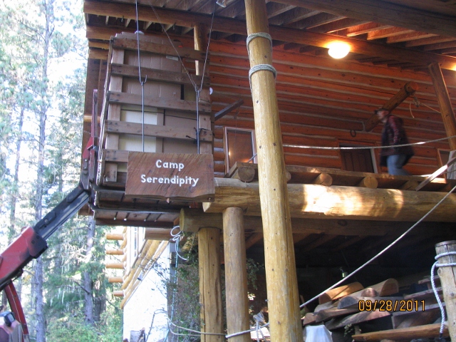 9/28/11 The crate of cabinets is lifted up to the level of the porch.