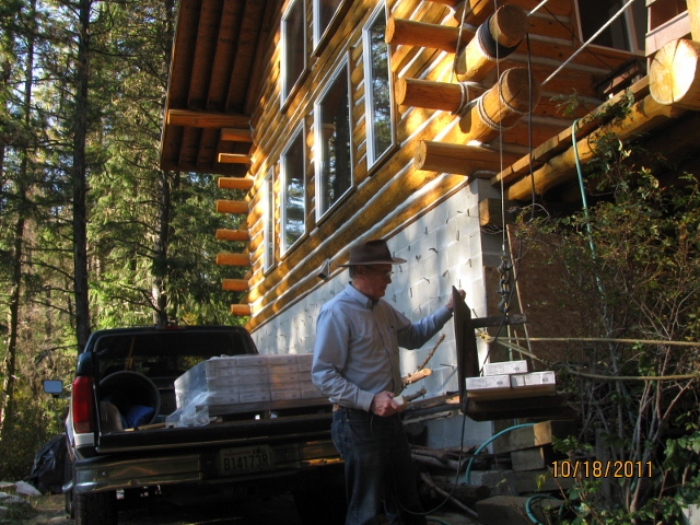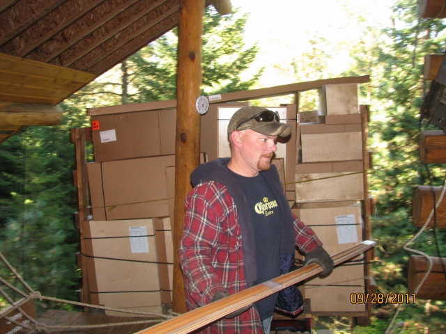 9/28/11 The delivery guy starting to unload the cabinets and carry them into the cabin.