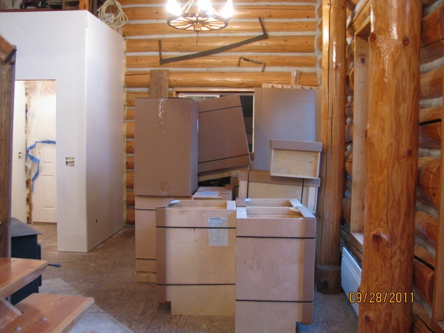 9/28/11 The cabinets are all safely stacked in the cabin.