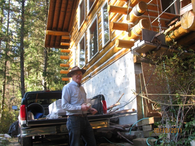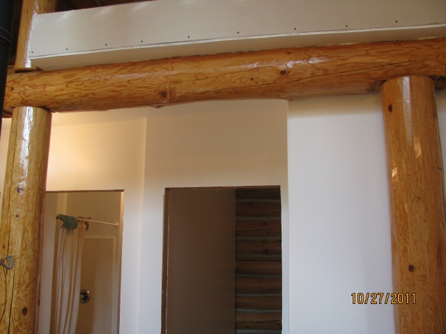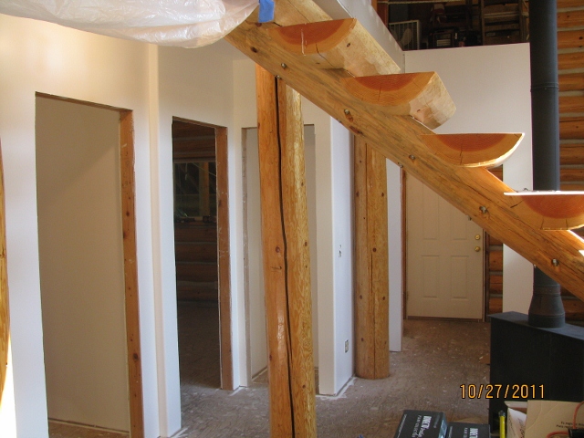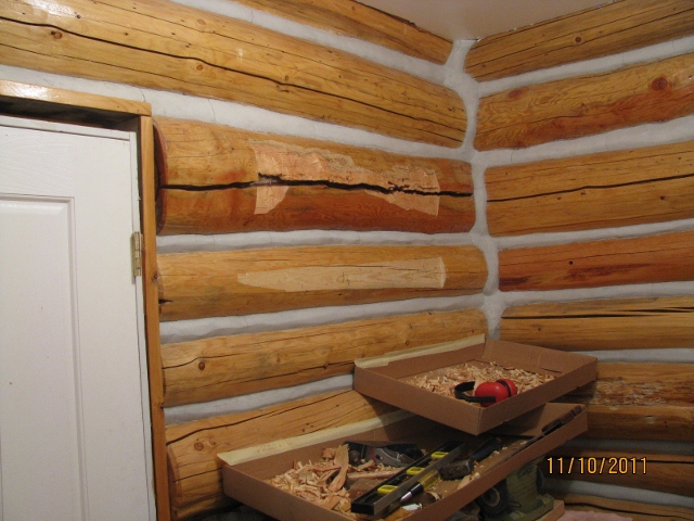 11/9/11 The beginning of flattening the log wall in the utility room prior to installing a cabinet unit.