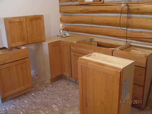 11/9/11 Some more kitchen cabinets staged in the bedroom