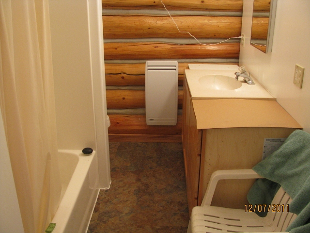 12/7/11 Here the bathroom cabinets are installed except for the sink, counter top, and a finished end panel. The sink you see is an old salvaged sink that will work until we get around to installing the final one.
