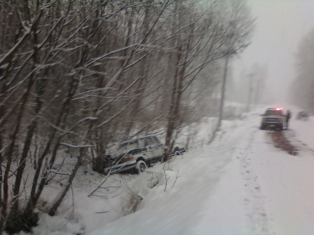 12/25/11 Paul slid off the road and into the ditch taking the family up to Camp Serendipity for an outing on Christmas Day. Our plans changed abruptly at this moment.