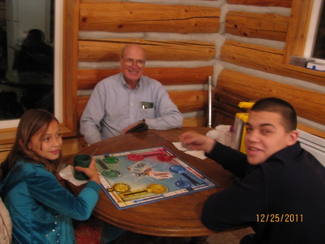 12/25/11 Paul, Andrew, and Tianna playing Sorry in the cabin after the accident.