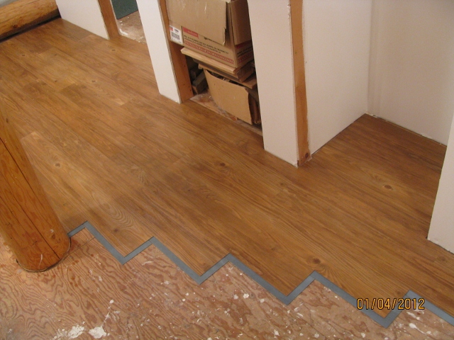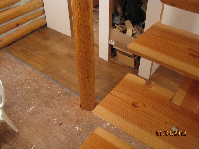 1/5/12 Here is a closer view of the start of the flooring showing the inside of the linen closet.