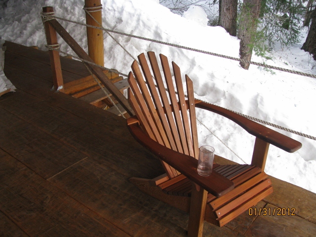 1/31/12 This is the beautiful Adirondack chair Dave made for us for Christmas. It will fit right in on the porch.