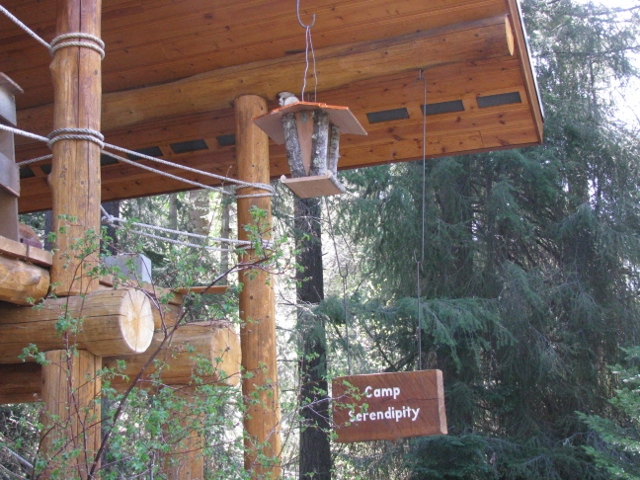 4/25/13 Here's the bird feeder Dave built, hanging from an anchor hook on the Grid F purlin.