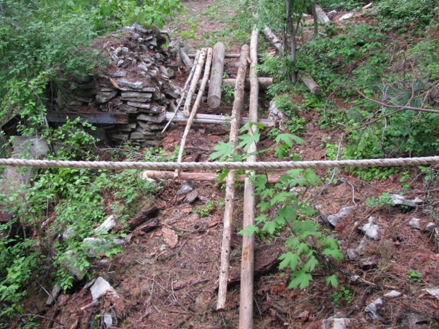 5/29/13 All the log remnants that were perviously stored right in front of the cabin have been moved to this rack in order to make room for all the firewood that will come from the 2013 ice storm.
