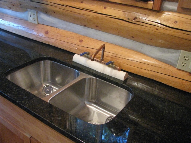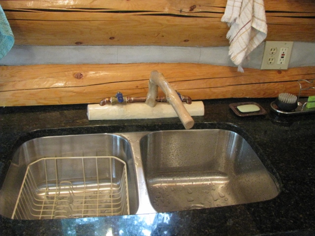 7/30/13 The temporary wooden kitchen faucet works and is now a much-awaited "feature" of the cabin at Camp Serendipity.