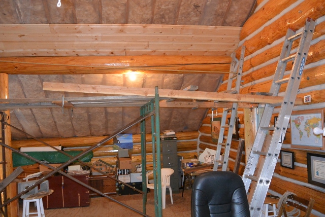 3/19/15 In this picture you can see the safety rope and the progress to date on the last section of ceiling boards.